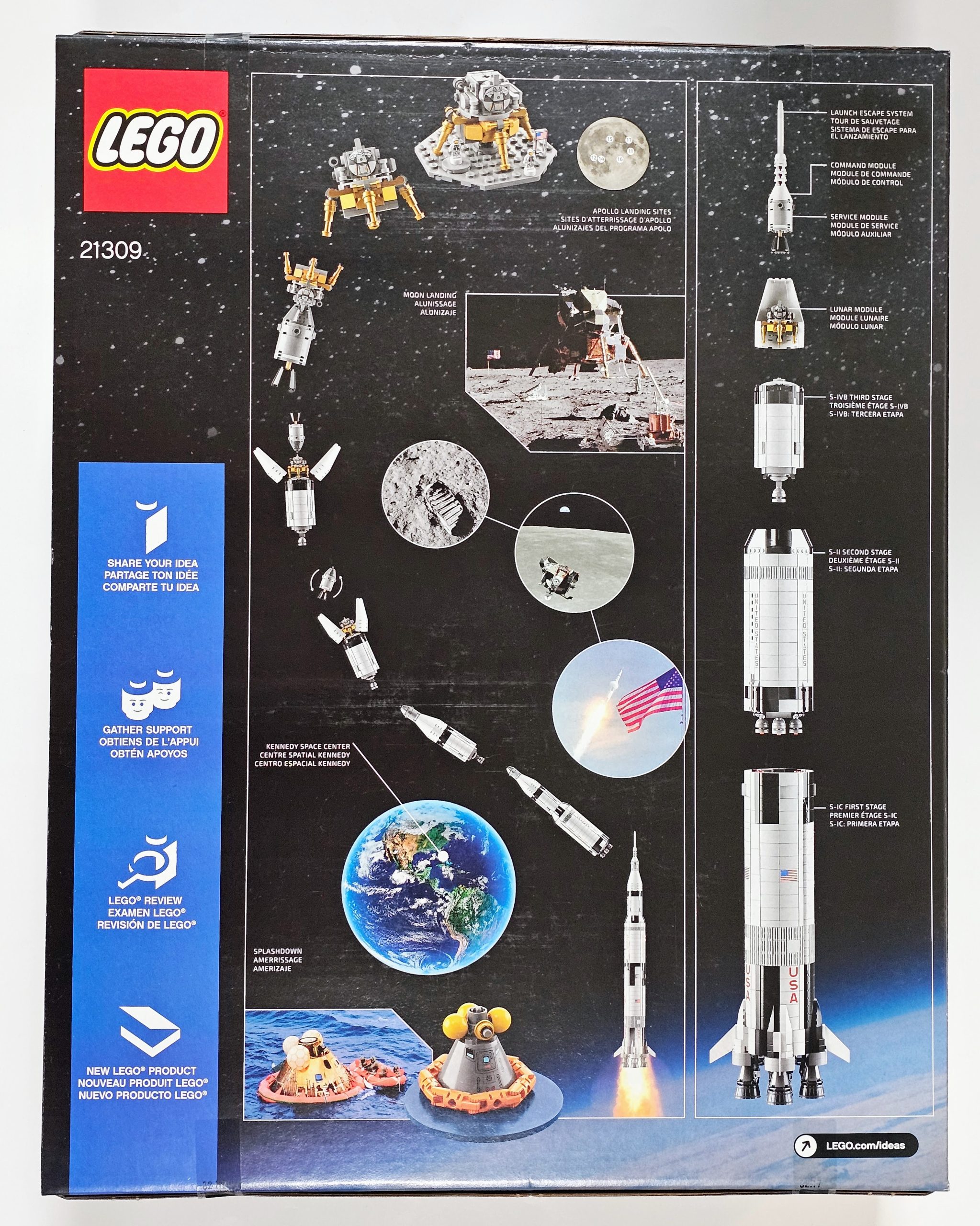 Display and role-play with this majestic meter-high LEGO® brick model of the NASA Apollo Saturn V. Packed with authentic details, it features 3 removable rocket stages, including the S-IVB third stage with the lunar lander and lunar orbiter. The set also includes 3 stands to display the model horizontally, 3 new-for-June-2017 astronaut microfigures for role-play recreations of the Moon landings, plus a booklet about the manned Apollo missions and the fan designers of this educational and inspirational LEGO Ideas set.