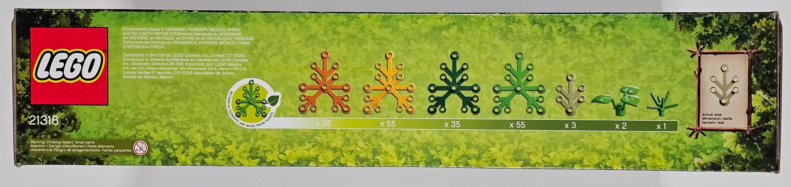 - Tree foliage features over 180 botanical elements made from plant-based polyethylene plastic using sustainably sourced sugarcane. Assorted plant elements around the tree are also made from this plant-based plastic. This is the first milestone in LEGO® Group’s ambitious commitment to make products using sustainable materials by 2030.