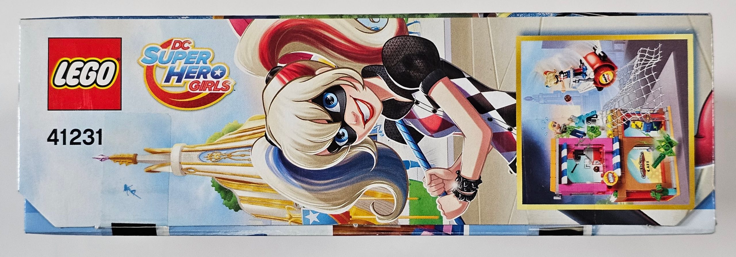 Join in the action-packed LEGO® DC Super Hero Girls™ world as Harley Quinn™ battles the mischievous green Kryptomites at the Capes and Cowls Café. This great set features Harley Quinn™ and Steve Trevor™ mini-doll figures, a two-level café building with a cupcake catapult and rotating arcade machine, plus Harley Quinn’s jet with movable wings, a net shooter, and two mischievous green Kryptomites.