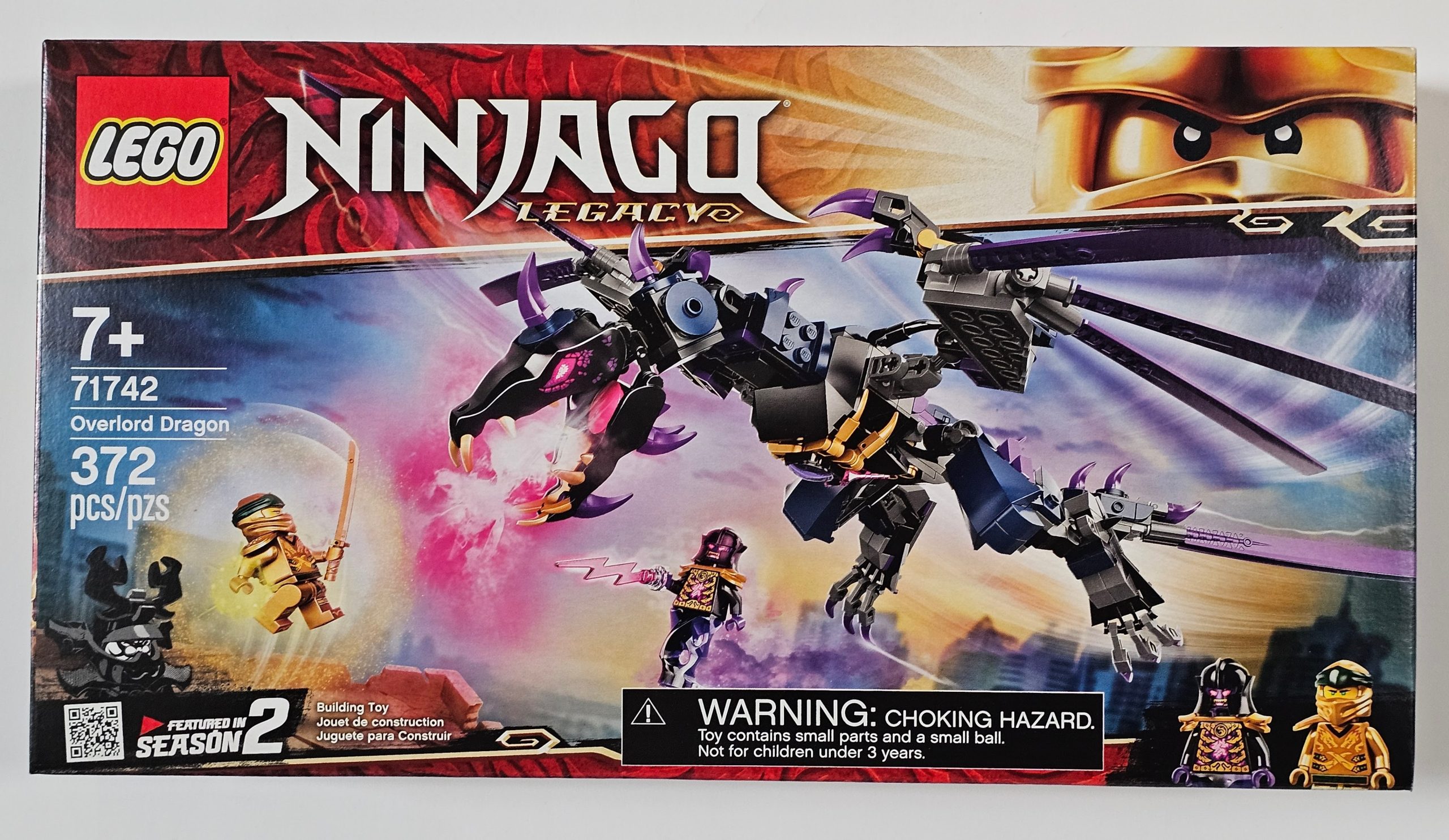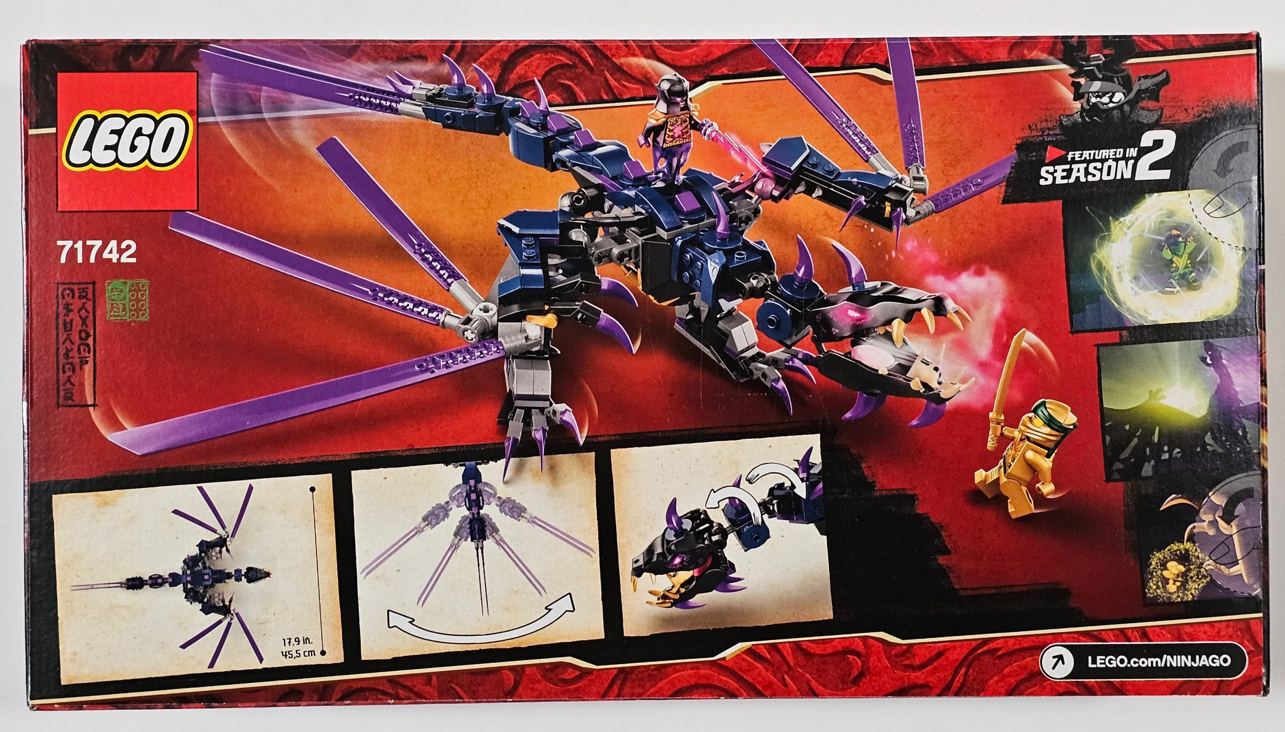 - Impressive dragon playset with 2 minifigures from season 2 of the LEGO® NINJAGO® TV series: Overlord armed with a blade and ninja Golden Lloyd with a katana strapped to his back.