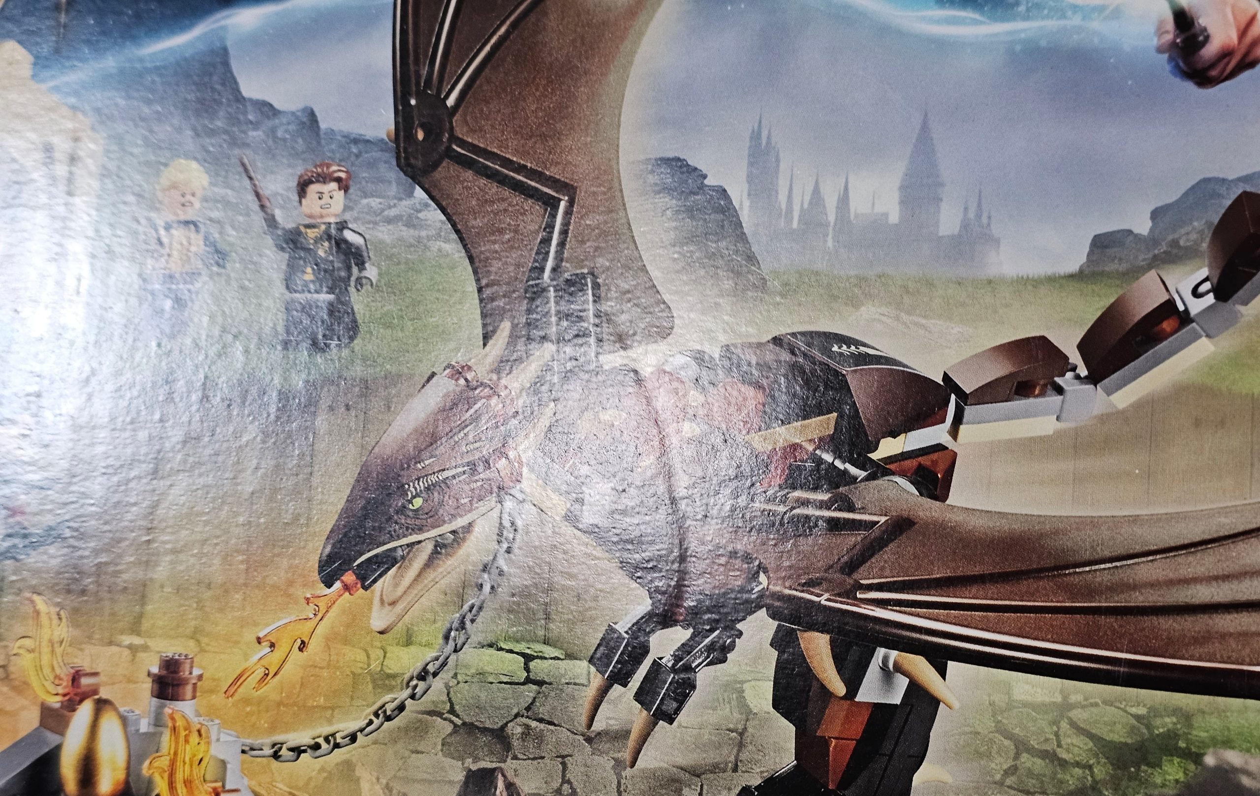 - Also includes Harry’s Firebolt racing broomstick, a rocky environment containing the golden egg, and a chain to attach the dragon.