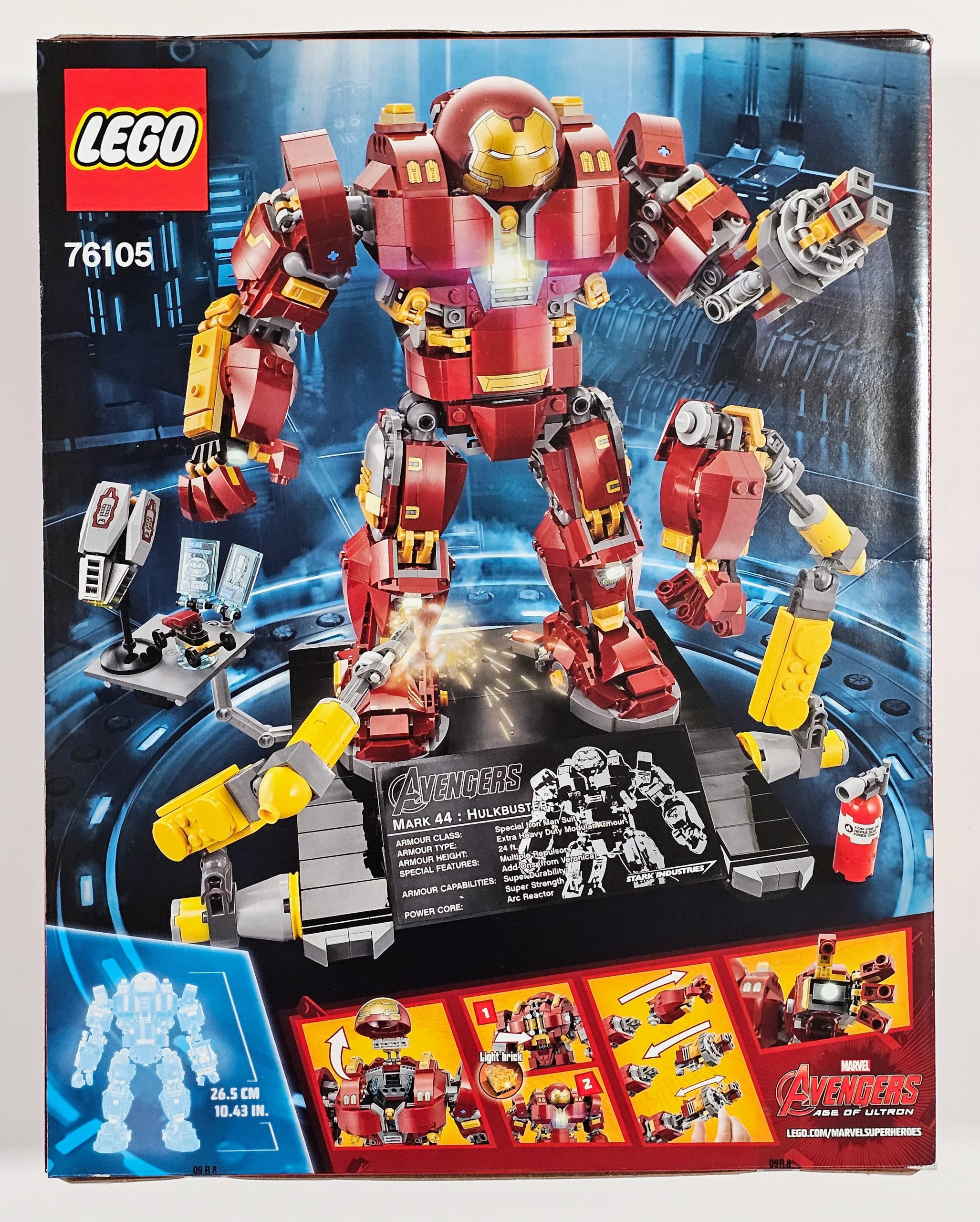 - Hulkbuster features a flip-up head, rotating torso, posable fingers, arms, legs and feet, LEGO® light brick in the chest, 2 interchangeable left arms—a standard arm or jackhammer arm with punching function and 12 glow-in-the-dark elements.