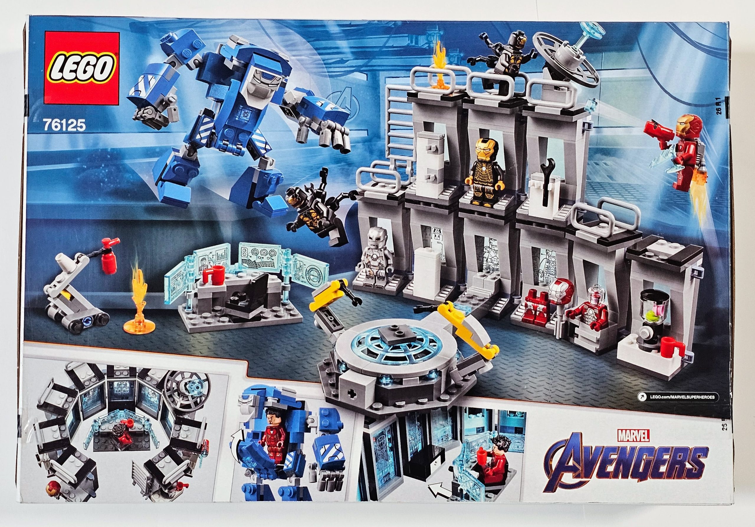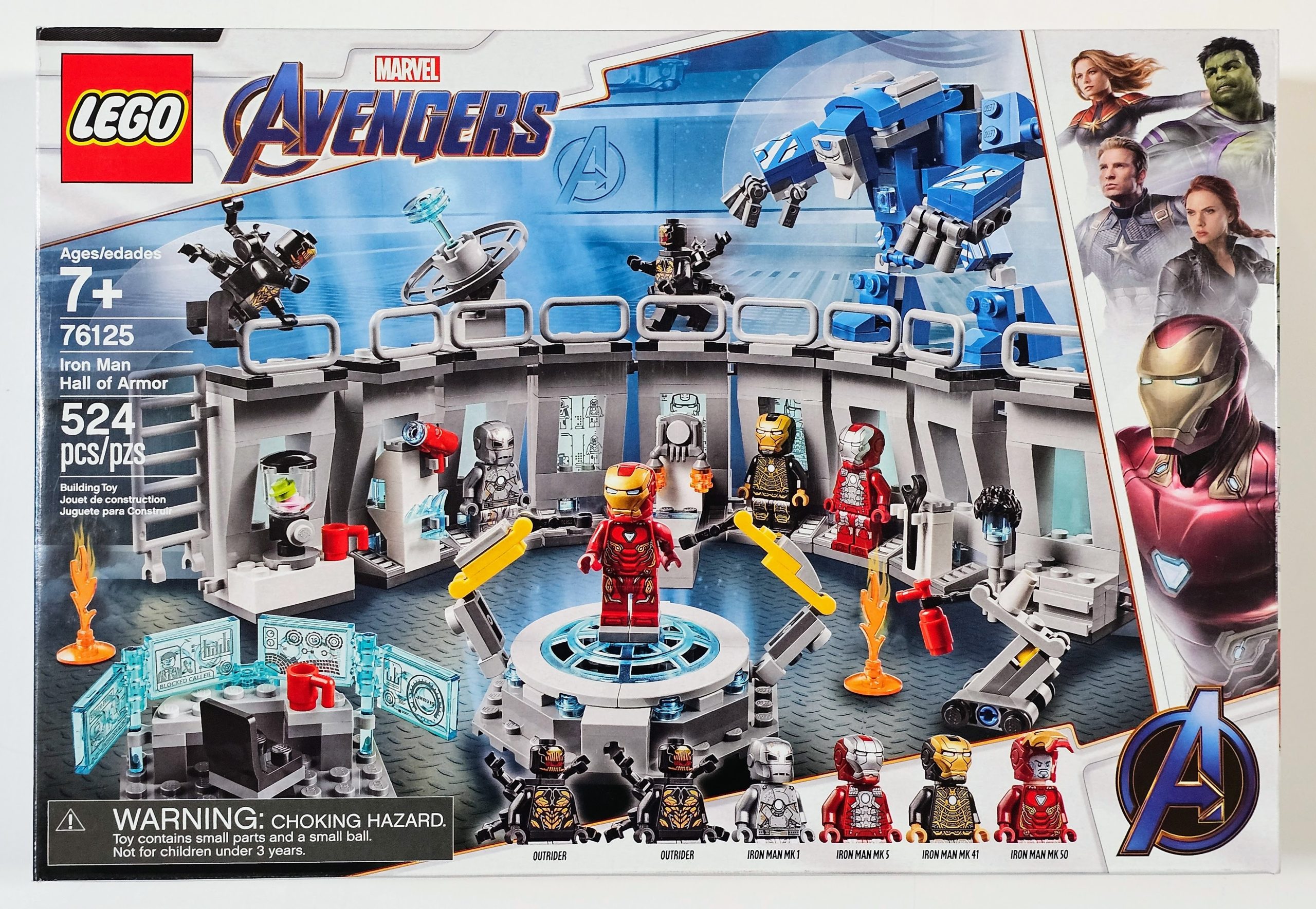 - Includes 6 Marvel Universe minifigures: Iron Man MK 1, Iron Man MK 5, Iron Man MK 41, Iron Man MK 50 and 2 Outriders.